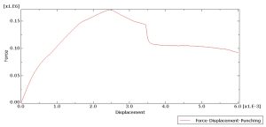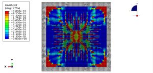نتایج حاصل از این شبیهسازی عددی میتواند درک عمیقتری از تفاوتهای رفتاری دو نوع بتن در برابر پدیده پانچینگ ارائه داده و زمینه را برای بهینهسازی طراحی و استفاده مؤثرتر از بتن الیافی در دالهای سازهای فراهم سازد. در این روش از تقارن به منظور کاهش محاسبات بهره برده شده است. پس از اتمام آنالیز تمامی خروجی ها از قبیل تنش، کرنش، آسیب های کششی و فشاری، نمودار نیرو-تغییر مکان و … قابل مشاهده می باشد. در شکل های زیر تعدادی از نتایج این آنالیز نمایش داده شده است.