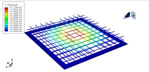 در پژوهش حاضر، شبیهسازی عددی تست پانچینگ دال بتنی با استفاده از نرمافزار اجزای محدود Abaqus انجام شده است. بهمنظور مدلسازی رفتار غیرخطی بتن، از مدل آسیبدیدگی پلاستیسیته بتن (Concrete Damaged Plasticity – CDP) برای هر دو نوع بتن معمولی و الیافی استفاده گردید. همچنین تحلیلها به روش دینامیکی صریح (Explicit) انجام شده است تا امکان بررسی دقیق رفتار غیرخطی، روند تکامل آسیب، انتشار ترکها و مکانیزم گسیختگی نهایی فراهم گردد.