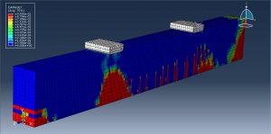 پس از اتمام آنالیز به خوبی می توان تمام خروجی ها از قبیل تنش،کرنش،آسیب کششی و فشاری، کاهش سختی در تیر بتنی، آسیب چسب و… را مشاهده نمائید. در شکل های زیر تعدادی از نتایج این آنالیز نمایش داده شده است.