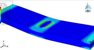 با توجه به تقارن فقط نیمی از هندسه مدل شده لذا شرایط مرزی تقارنی به صفحات تقارن اعمال شده است. استفاده از مش بندی مناسب نیز تاثیر زیادی در دقت نتایج دارد. پس از اتمام آنالیز به خوبی می توان تمامی خروجی های گرافیکی را مشاهده نمود. در انتها نیز نمودار نیرو جابه جایی برای دریافت ماکزیمم ظرفیت تحمل بار ترسیم شده است. در شکل های زیر تعدادی از نایج این آنالیز نمایش داده شده است.