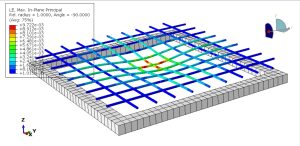 The objective of this investigation is to evaluate the punching shear capacity and failure mechanisms of RC flat slabs reinforced with superelastic Ni–Ti under low-velocity impact loading. Particular attention is given to load–time response, impact force history, energy dissipation, crack patterns, damage evolution, and residual deformation. The study aims to provide insight into the effectiveness of superelastic Ni–Ti reinforcement in mitigating brittle punching failure and enhancing impact resilience of flat slab systems. After the simulation, all results such as stress, strain, tension damage, compression damage, stiffness degradation, and … are available. You can see some figures of the results below