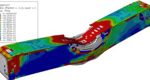 To model tool behavior, steel material with elastic-plastic data and thermal parameters is used. To model ABS material, elastic data and Johnson-Cook plasticity with thermal conductivity, specific heat, and…. is used. The dynamic temp explicit step is appropriate for this type of analysis. The friction coefficient with the heat generation parameter is used to define contact property. The rigid body constraint is implied for the tool to reduce the calculation volume during the FSW process. The fixed boundary condition is assigned to the sides of the Eulerian part and axial and rotation velocity to the tool. The uniform material assignment is used to model the Eulerian material location. The mesh should be fine to obtain good results