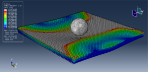 Damage initiation refers to the onset of degradation at a material point. In Abaqus the damage initiation criteria for fiber-reinforced composites are based on Hashin’s theory. These criteria consider four different damage initiation mechanisms: fiber tension, fiber compression, matrix tension, and matrix compression. In this tutorial, the Hashin damage model is considered for the wood panel under the impact. The engineering elastic model, also plastic model with Hill’s theory can be used. The dynamic explicit step with general contact capability is selected. The cohesive behavior as contact property by using stiffness, damage and its evolution are defined to model interlaminar failure. The initial velocity is assigned to the rigid impactor and fixed boundary condition to the wood panel sides. The mesh should be fine to obtain the correct results