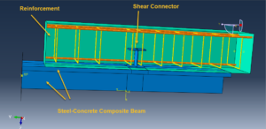 In this tutorial, the Simulation of the Push-Out test on a new shear connector of the I-Shape in Abaqus has been investigated. The concrete is modeled as a three-dimensional solid part. The steel reinforcements are modeled as wire parts. The steel beam and connector are modeled as three-dimensional solid part. You can see a figure of the assembled parts below